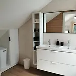 Bathroom facilities also include a shower and a washing machine. Towels are included for added comfort.
